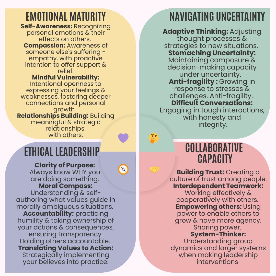 You need to start focusing on the 4 main areas seen below. To become a Democratic Leader, you must develop capacity in all 4 areas. The secret is in synergy between these 4 areas! We will address each of them in our future newsletters in an actionable and practical manner, enabling you to continually advance your leadership skills.